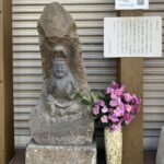 JR佐賀駅を出て、佐賀県立図書館に向かって歩いていた時、歩道脇に石像が設置されているのに気づきました。道路側ではなく、建物側の壁面に置かれていたのです。花が添えられ、水の入ったコップが二個、置かれています。一瞬、お地蔵さんかと思ってしまったのですが、傍らに「忍者恵比須」と書かれた板が掲げられています。その上にはQRコードまで表示されていました。読み取って開いてみると、日本語、中国語、英語、韓国語で音声ガイドが用意されていました。「恵比須DEまちづくりネットワーク」がガイドしてくれるようです。